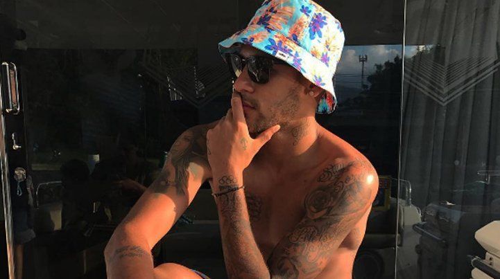 "Friends" se titula la foto que posteó Ney en Instagram, en la que se lo ve rodeado de amigos que sujetan bananas y una chica posando con un arma.