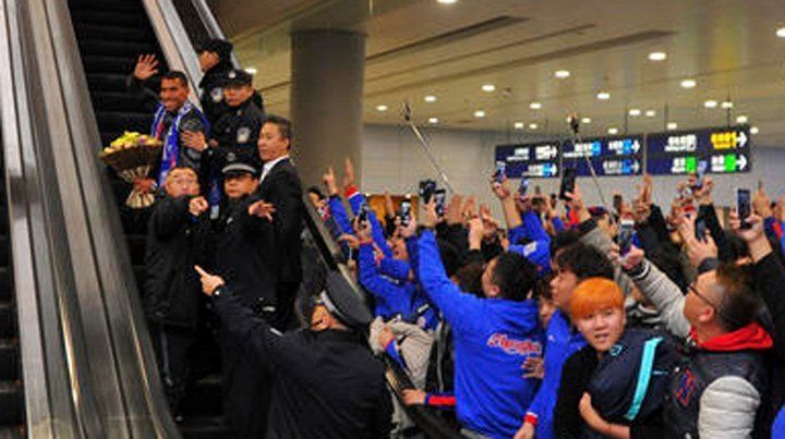 El ex Boca llegó ayer a Shanghai, donde fue recibido por decenas de hinchas que corearon su nombre y le pidieron autógrafos en una calurosa bienvenida.