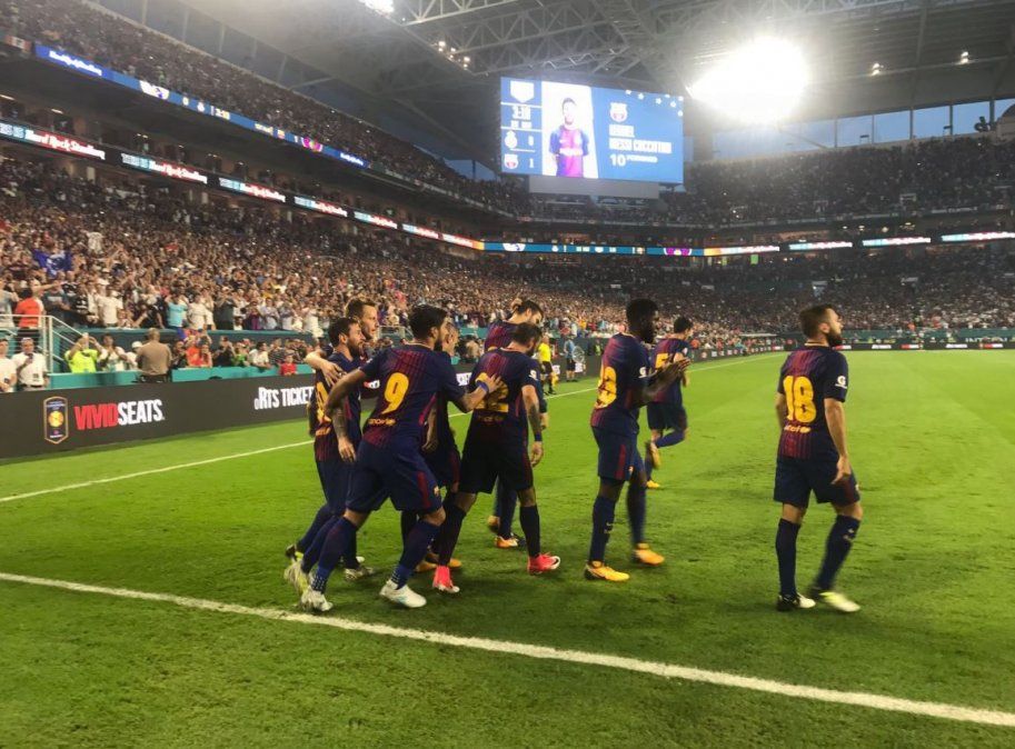 El Real Madrid-Barcelona en Miami es un amistoso sobre el papel, pero para los 65.000 aficionados que acuden al Hard Rock Stadium es un evento "mayor que la Super Bowl".Las máximas figuras de ambos equipos, con excepción de Cristiano Ronaldo, estuvieron presentes para dar cátedra.El primero en marcar la diferencia fue Lionel Messi, quien quebró un par de caderas y facturó para el 1 a 0 del Barcelona a los 3 minutos del primer tiempo.