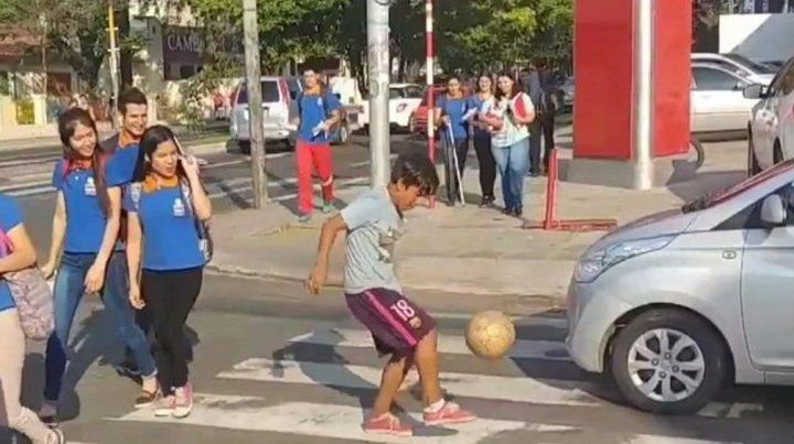 Ahí, entre autos que van y vienen, colectivos y gente que camina apurada, Iván empezó a ganarse unas monedas con la pelota, haciendo jueguitos. Su talento y habilidad estaba a la vista de todos.