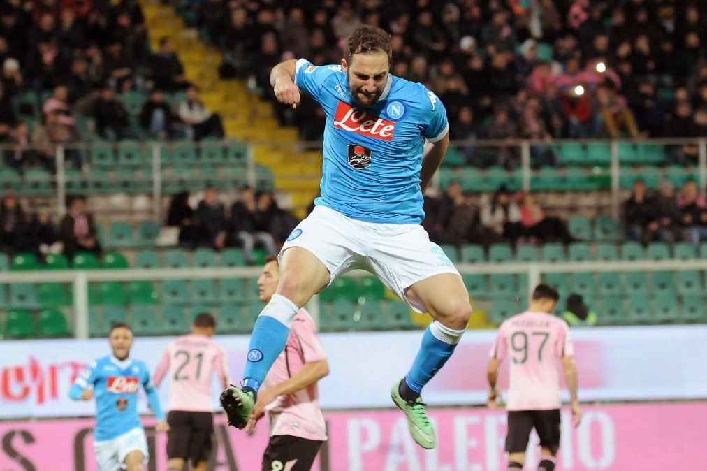 El delantero del seleccionado argentino de fútbol Gonzalo Higuaín convirtió el único tanto del Nápoli, que derrotó como visitante a Palermo, por 1-0, en partido válido por la fecha 29 de la Serie A de Italia.