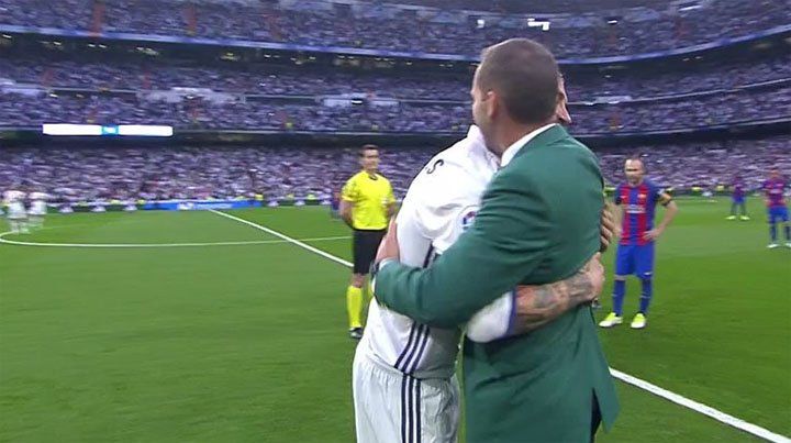 El Real Madrid homenajeó al golfista español Sergio García, que antes del inicio del encuentro que disputa el conjunto blanco frente al Barcelona hizo el saque de honor un par de semanas después de conquistar el Masters de Augusta.