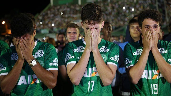 De esta manera el club Chapecoense homenajeó a los tres futbolistas que sobrevivieron a la tragedia aérea, Alan Ruschel, Helio Neto y Jackson Follman.