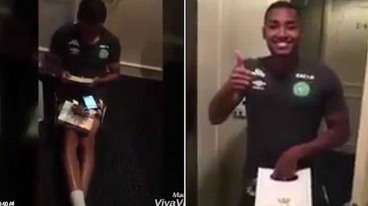 Los jugadores del Chapecoense, todos cómplices de la joven brasileña, filmaron el momento en el que le entregaban el recado de Graziele y se emocionaba por la linda noticia.