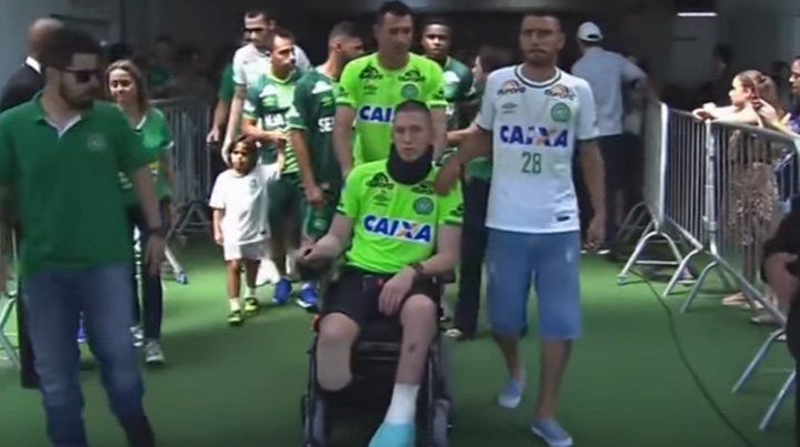A casi dos meses de la tragedia que sufrió el equipo brasileño Chapecoense, luego de que se estrellara el avión que trasladaba al plantel a Colombia, el ex arquero Jackson Follmann reapareció en público previo al partido amistoso con Palmeiras en el estadio Arena Condá.