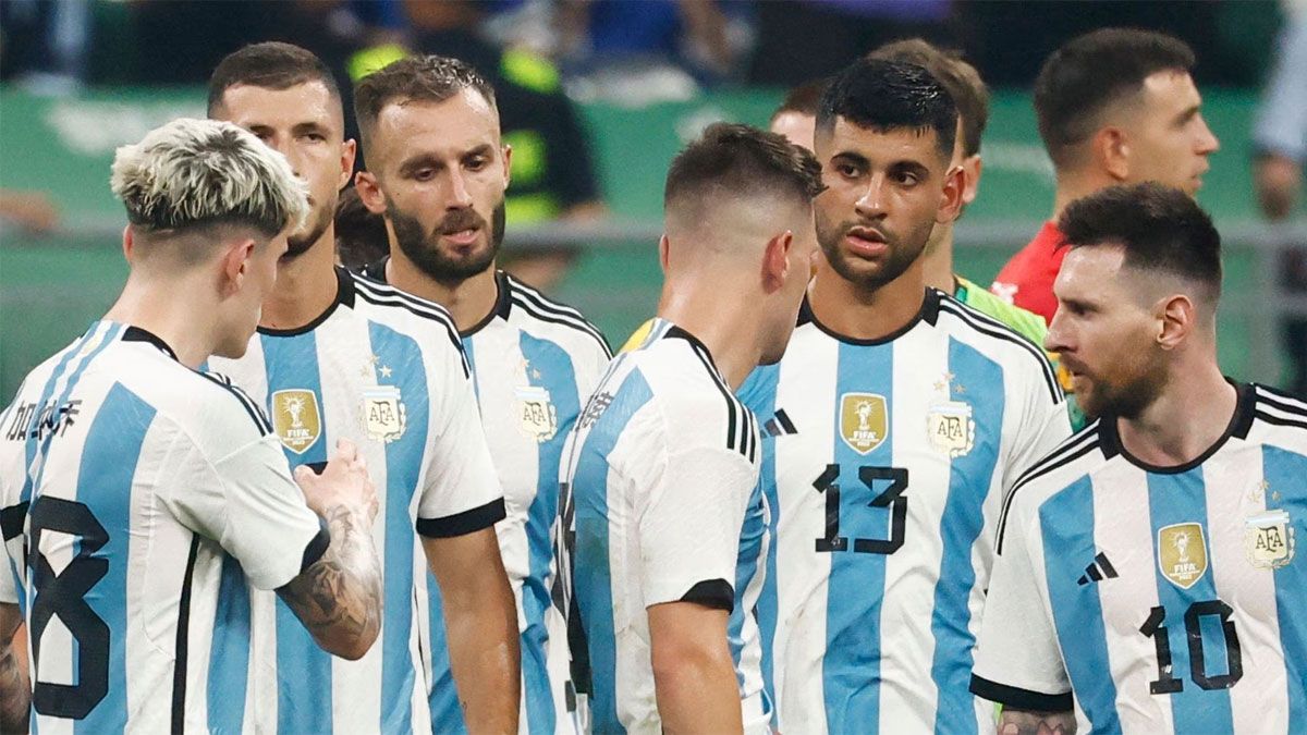 Lionel Scaloni pondría en cancha estos once jugadores: Emiliano Martínez; Nahuel Molina, Cristian Romero, Nicolás Otamendi, Nicolás Tagliafico; Rodrigo De Paul, Enzo Fernández, Alexis Mac Allister; Lionel Messi, Lautaro Martínez o Julián Álvarez y Ángel Di María o Nicolás González.