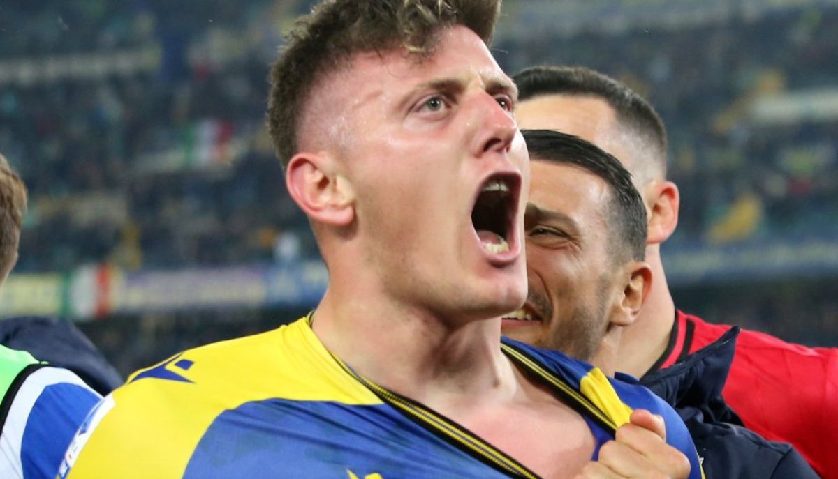 El Tanque Adolfo Gaich, que así consiguió el primer tanto desde su llegada a Verona a principios de año, desató un alocado festejo en el estadio Marcantonio Bentegodi.