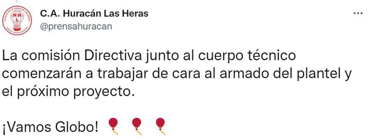 "Y agradezco que los dirigentes me hayan buscando en este momento muy difícil del club, donde se jugaba la permanencia. Tomamos la decisión de asumir en el club y todo terminó muy bien", mencionó.