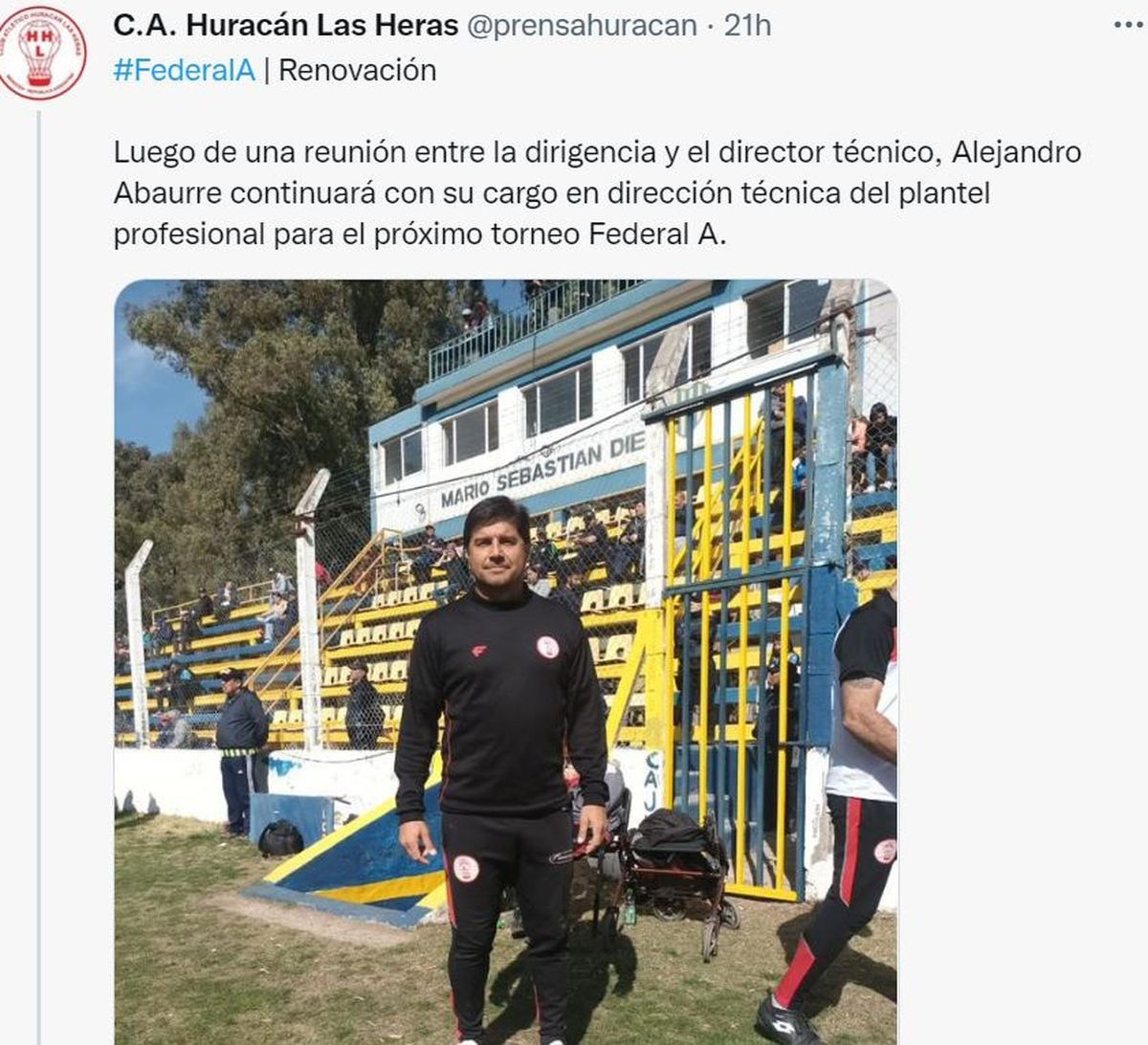 El entrenador Alejandro Abaurre se siente muy feliz por haber cumplido con el objetivo de dejar a Huracán Las Heras en el Federal A.