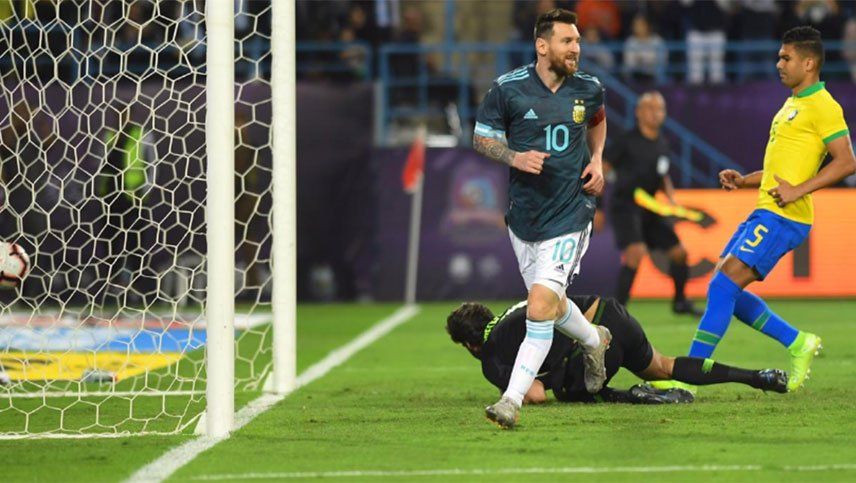 El arquero brasileño Allison le adivinó la intención a Messi y el contuvo el disparo a la Pulga, que por suerte logró capturar el rebote y adelantar al equipo nacional ante los de Tité.