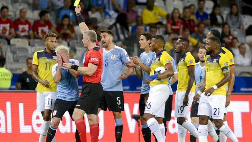 Nicolás Lodeiro abrió el marcador en el partido entre Uruguay y Ecuador y después recibió terrible codazo por parte de José Quintero.