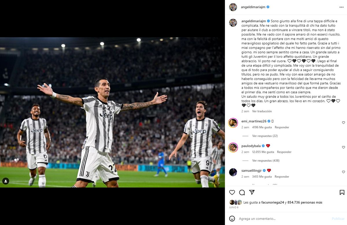 Ángel Di María está a punto de terminar el contrato que lo une al Juventus de Italia y estaría buscando seguir en Europa, al menos una temporada más hasta la Copa América 2024 en Estados Unidos.