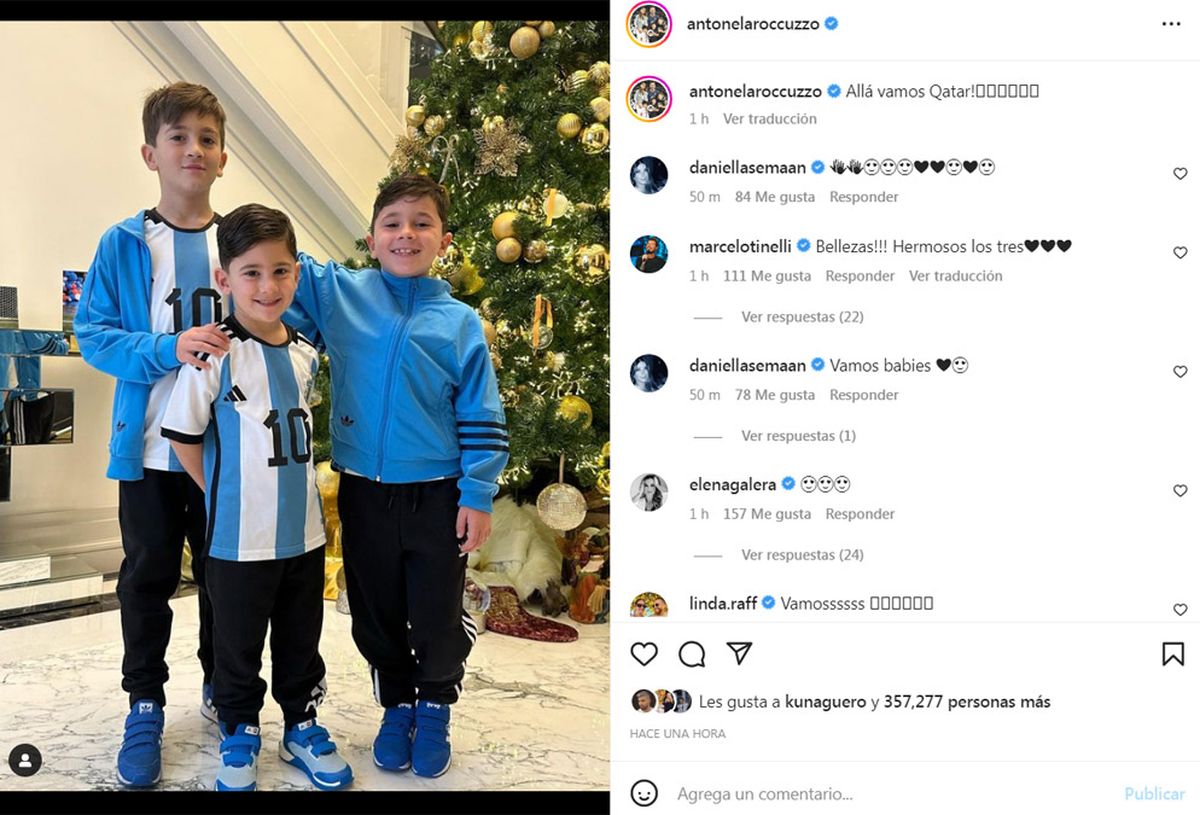Después de una gran espera y nervios, Antonela Roccuzzo, esposa de Lionel Messi, mostró en una fotografía a sus tres hijos más que listos para partir hacia el Mundial Qatar 2022, justo el día de la ceremonia inaugural y el primer partido de la Copa del Mundo.