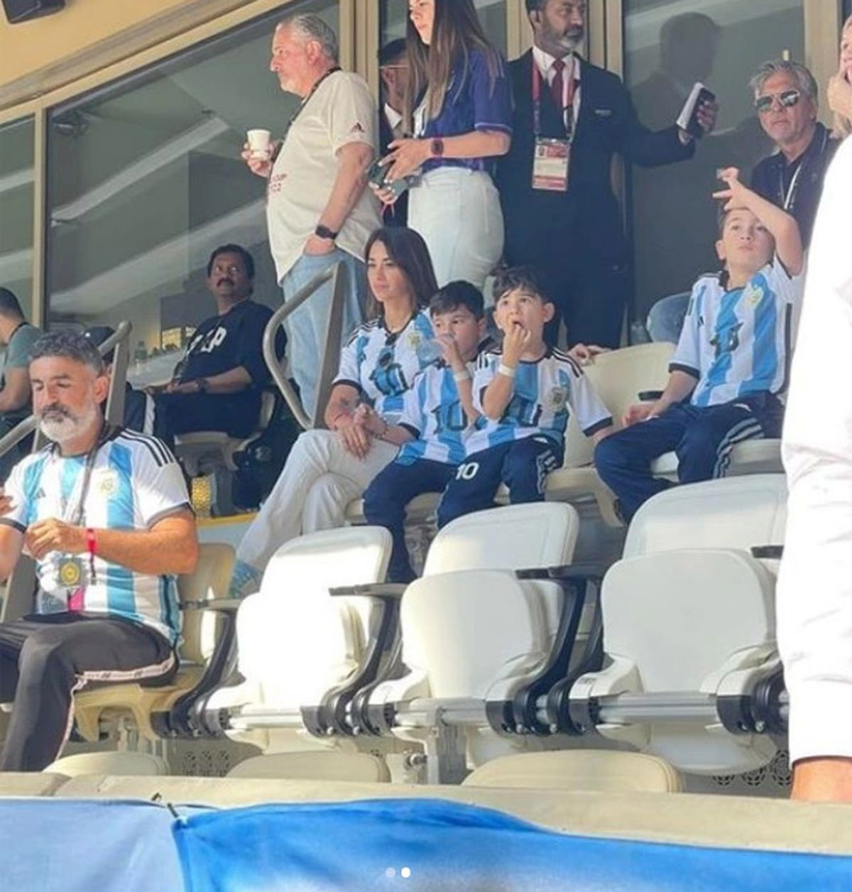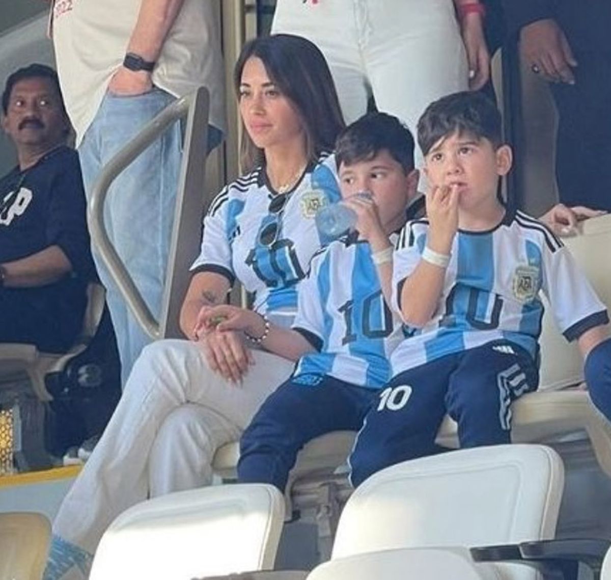 En compañía de sus hijos Thiago, Mateo y Ciro, Antonela Roccuzzo vivió de una manera diferente el partido, ya que la rosarina está acostumbrada a los festejos de la albiceleste.