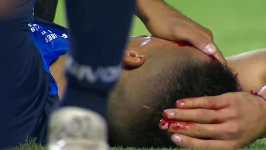 El futbolista brasileño le abrió la cara con una patada voladora criminal que, obviamente, fue castigada con tarjeta roja.