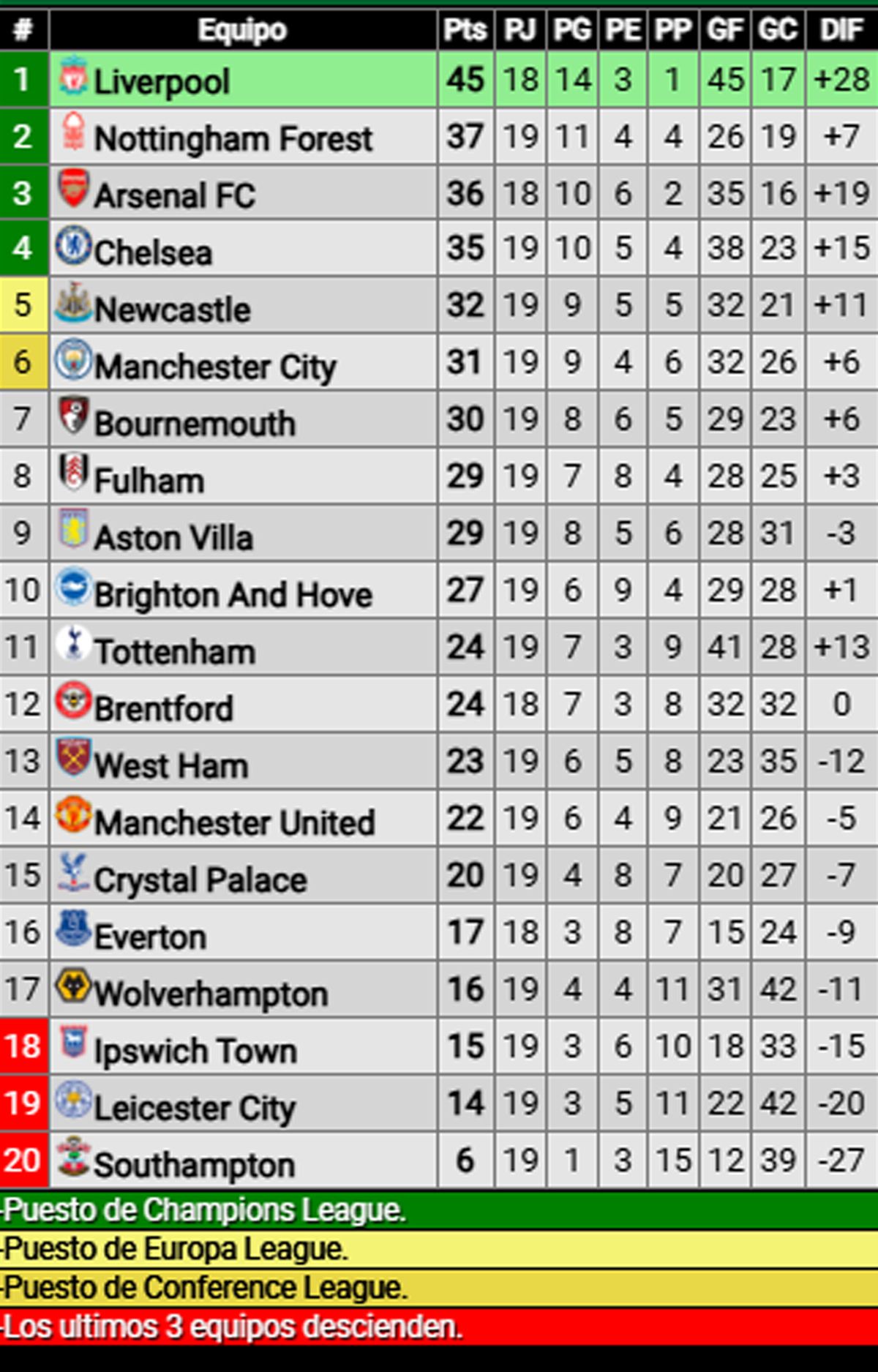 El Manchester no levanta cabeza y termina la primera mitad de la temporada en el puesto 14 con solo 22 puntos y una campaña de 6 triunfos, 4 empates y 9 derrotas.
