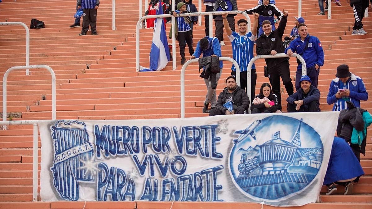 Y en ese contexto, el hincha de Godoy Cruz, acompañando, en una tarde fría en Mendoza. En el Día del Himno Nacional, aquel canto honorífico a nuestra patria que hoy sonó en los instrumentos de la banda de la Policía de Mendoza en la previa del partido.