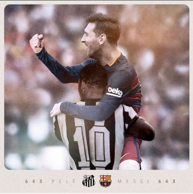 Lionel Messi alcanzó la cifra récord de 643 goles con la camiseta de un mismo club, la cual le pertenecía al astro brasileño Pelé (hizo la misma cantidad de goles con la casaca del Santos de Brasil). Tras el gol de La Pulga, el cartel eléctrico del estadio Camp Nou felicitó a su capitán y usó un fotomontaje para homenajearlo.