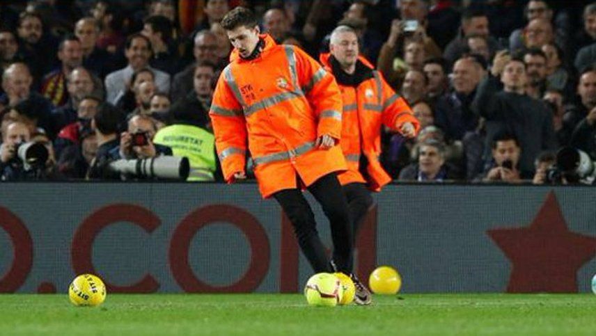 El partido estuvo parado un minuto y treinta segundos cuando iban 10 del segundo tiempo, debido al lanzamiento, por parte del público local, de balones al terreno de juego del Camp Nou.