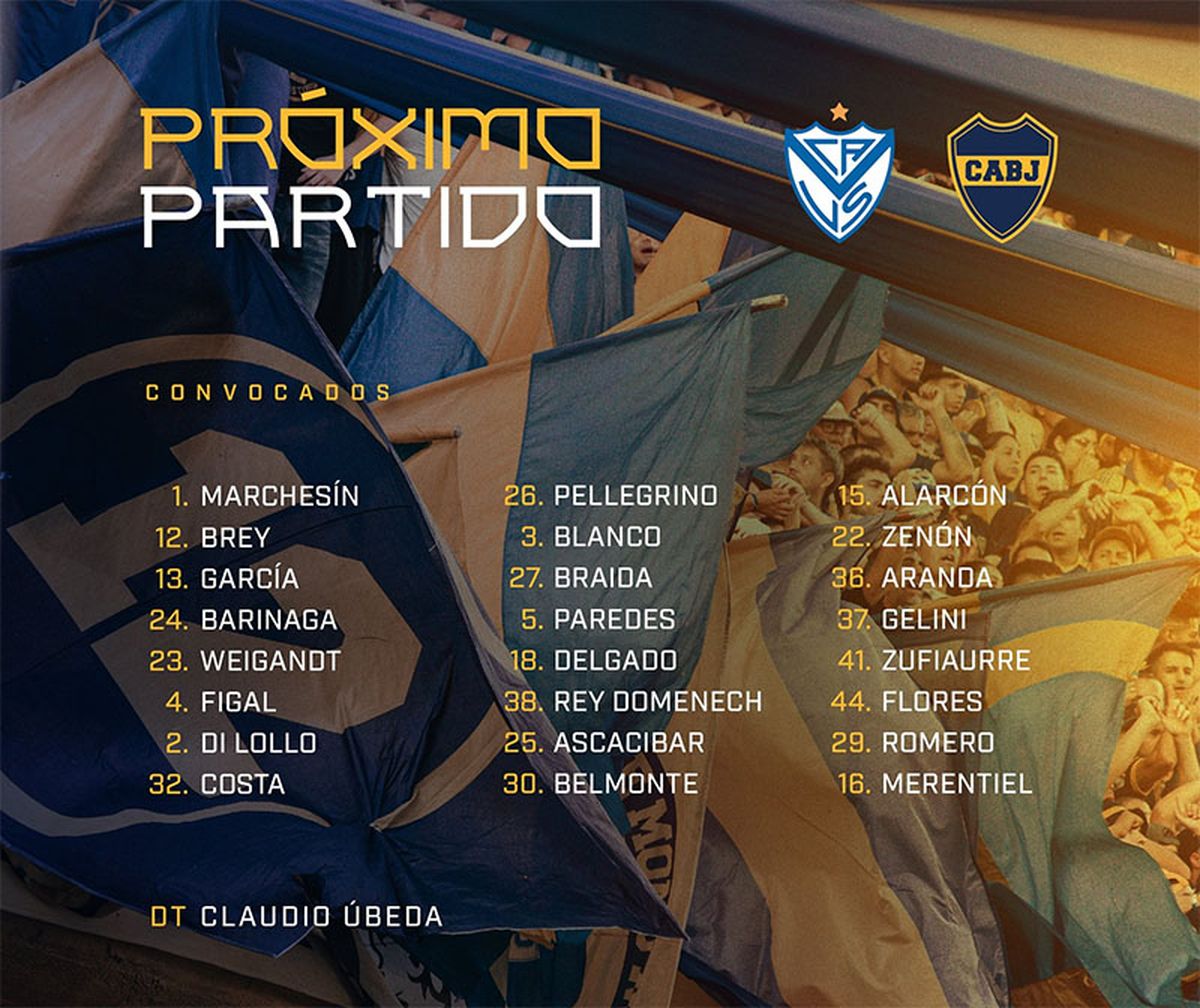 Vélez: Álvaro Montero; Joaquín García, Emannuel Mammana, Lisandro Magallán, Elías Gómez; Claudio Baeza, Tobías Andrada; Manuel Lanzini, Diego Valdés, Matías Pellegrini; Dilan Godoy. DT: Guillermo Barros Schelotto.