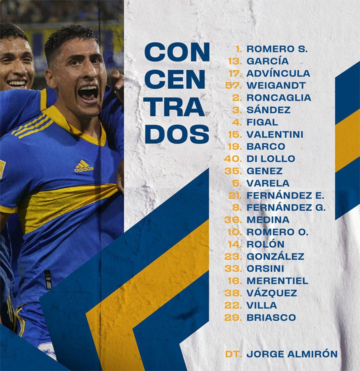 Uno de los que no aparecen en la nómina es Frank Fabra, quien todavía no se recupera de su lesión en la rodilla derecha, que sufrió en la derrota contra Colón de Santa Fe.