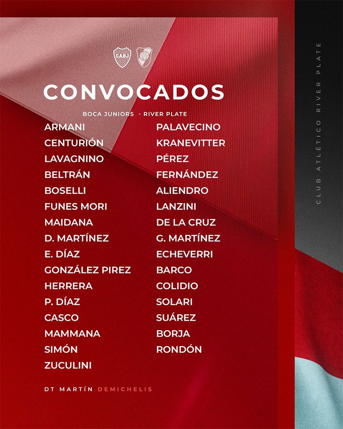 Los "Millonarios", que ganaron por última vez en La Bombonera en 2018 con uno de los goles anotados por Gonzalo "Pity" Martínez, quien estará entre los suplentes, desean quedarse con el Superclásico por segunda vez en el año tras el triunfo anterior del 7 de mayo pasado en el estadio Monumental por 1 a 0 con el gol anotado por Borja de penal, luego de una polémica decisión del árbitro neuquino Darío Herrera, quien posteriormente fue parado por 15 días y estuvo dos fechas sin dirigir.