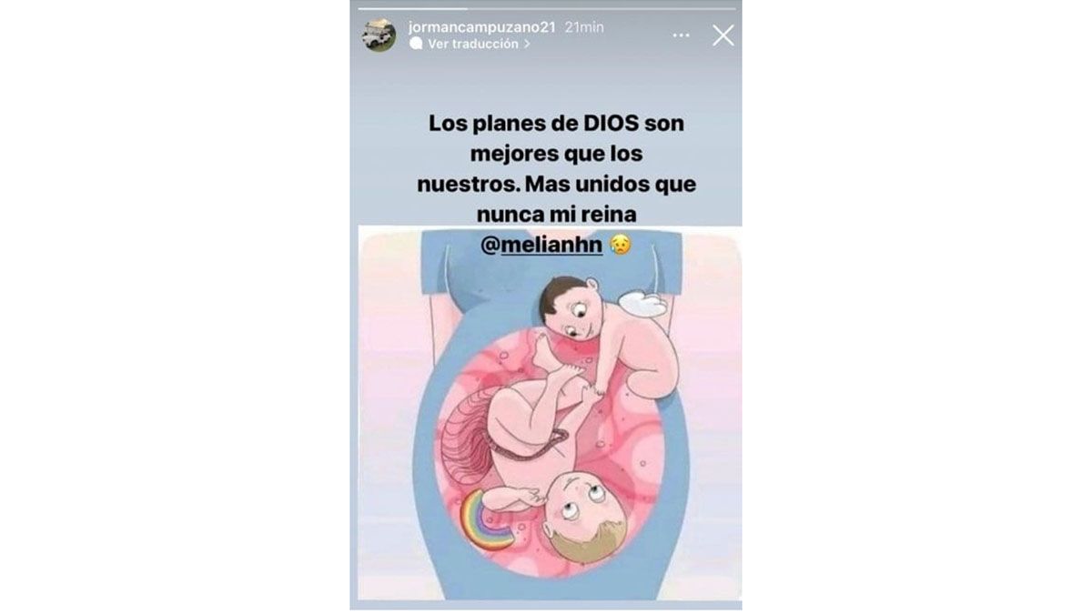 "Los planes de Dios son mejores que los nuestros. Más unidos que nunca mi reina", escribió Campuzano en su cuenta de Instagram, donde compartió una imagen que da a entender la triste situación que atravesó la pareja. Después aclaró que su mujer y el otro nene "se encuentran bien".