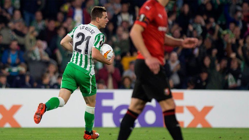 El mediocampista argentino Giovani lo Celso marcó este jueves un gol en Betis de España en la derrota y eliminación ante Rennes de Francia, por los 16avos de la Europa League de fútbol.