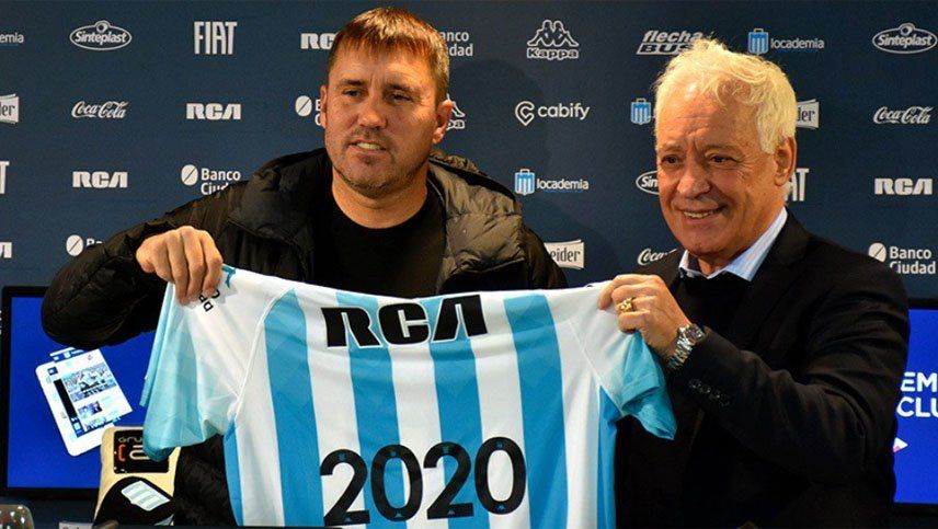 El presidente de Racing, Víctor Blanco, y el director técnico, Eduardo Coudet, anunciaron la renovación del contrato del entrenador con la entidad hasta junio del 2020.