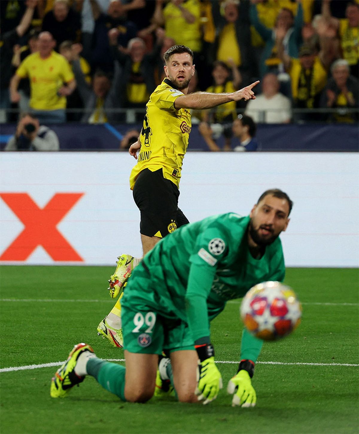 El primer tiempo comenzó parejo pero con el correr de los minutos, el Dortmund ganó terreno y copó más el campo del equipo parisino. En una salida del fondo del local con Nico Schlotterbeck, Fullkrug encaró casi en solitario ante una endeble marca puso el 1 a 0 con un zurdazo cruzado al segundo palo de Gianluigi Donnarumma.