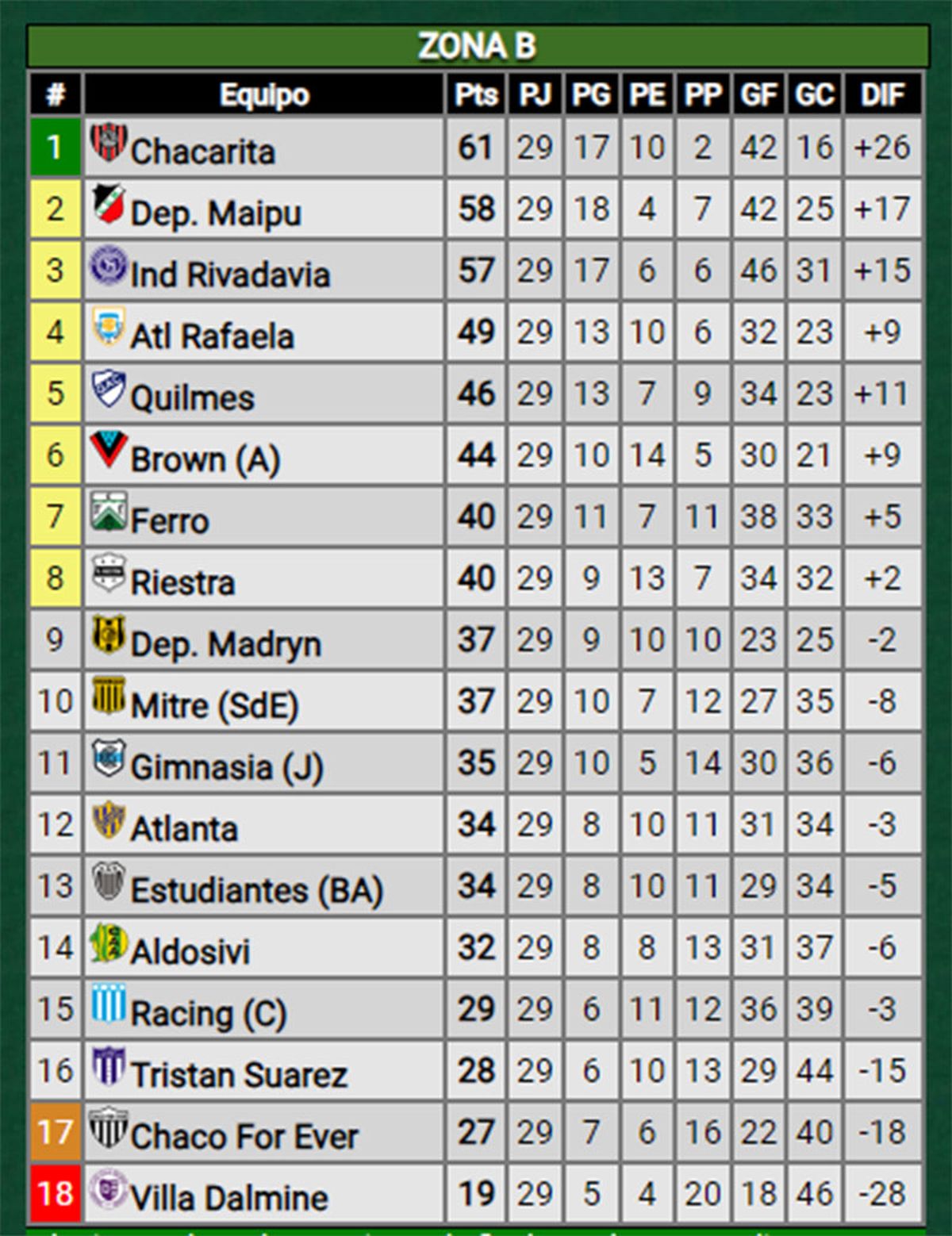 Este domingo Deportivo Maipú venció a Estudiantes de Buenos Aires e Independiente Rivadavia perdió ante Brown de Adrogué. Así quedaron las posiciones de la Zona B de la Primera Nacional