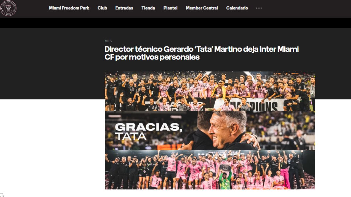 La página oficial del Inter Miami, equipo de la MLS, la liga estadounidense de fútbol, donde juega Lionel Messi, los mendocinos Benjamín Cremaschi y Franco Negri, despidió con un posteo emotivo al Tata Martino, quien los llevó a obtener sus primeros dos títulos al club.