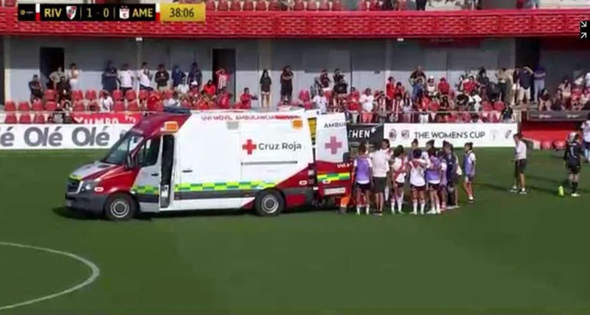 Tanto las jugadoras de River como las de América se ubicaron para tapar la escalofriante imagen que conmocionó a todos los presentes. De hecho, algunas de sus compañeras no lograron contener las lágrimas.