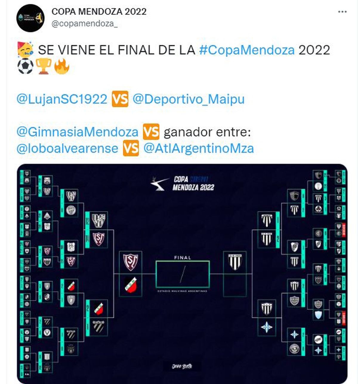 Ahora Luján se medirá ante Deportivo Maipú en una de la semifinales. El otro encuentro lo disputarán Gimnasia y Esgrima -que le ganó 2 a 1 a Academia Chacras-, y el ganador de la llave que jugarán Atlético Argentino -que dejó en el camino a Independiente Rivadavia- y Pacífico de General Alvear -que superó 2 a 1 a Deportivo Algarrobal-.