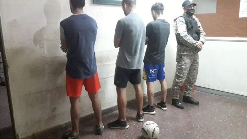 Los tres futbolistas fueron demorados en la comisaría segunda por violar el aislamiento social, preventivo y obligatorio y también fue secuestrada la pelota.