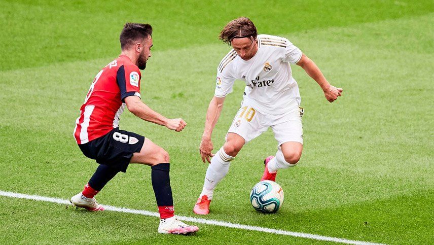 Ya en tiempo de descuento, cuando la victoria estaba prácticamente consumada, el croata Luka Modric hizo una jugada de lujo sobre el medicamista Oihan Sancet, del equipo rival.