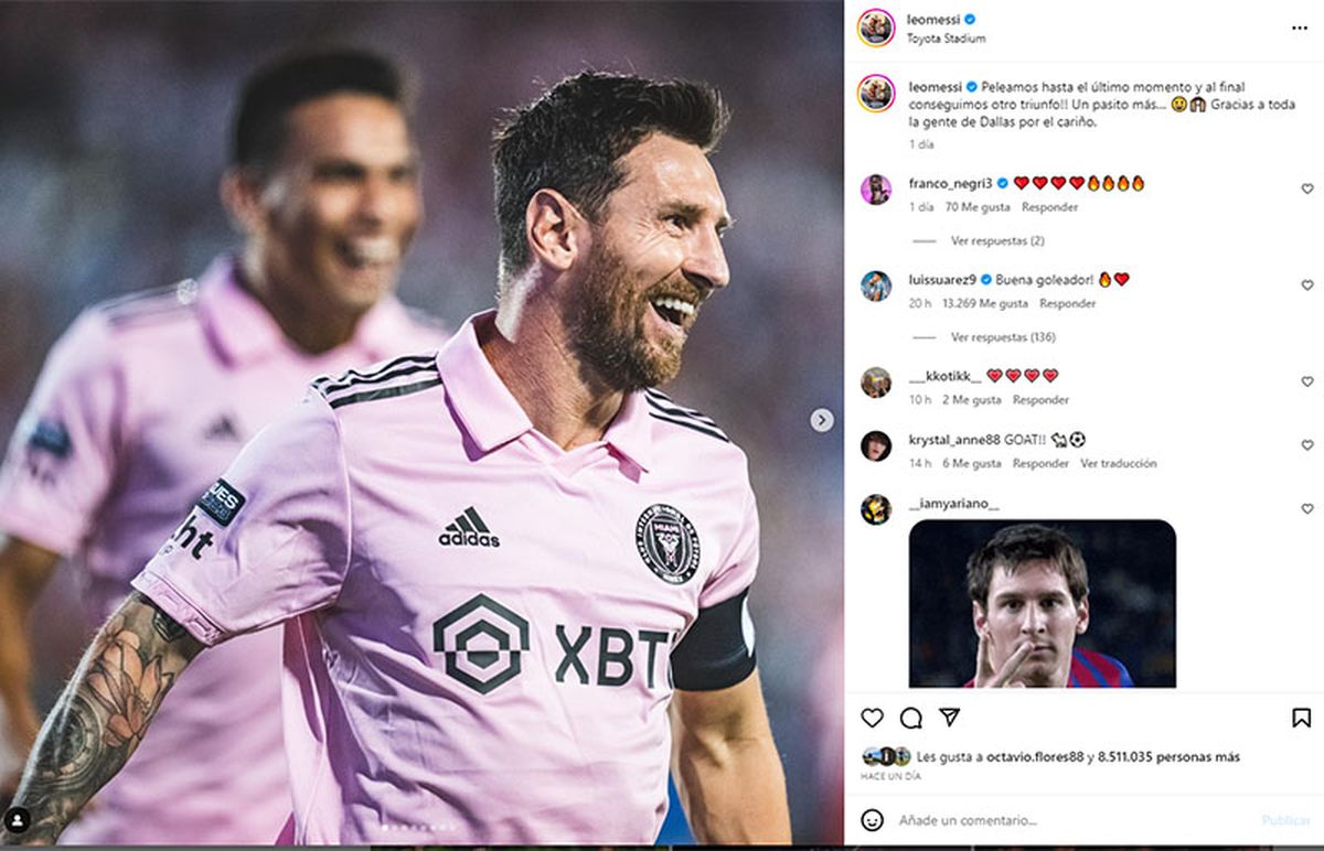 "Peleamos hasta el último momento y al final conseguimos otro triunfo. ¡Un pasito más! Gracias a toda la gente de Dallas por el cariño", expresó Messi mediante sus redes sociales luego de la victoria desde los doce pasos.