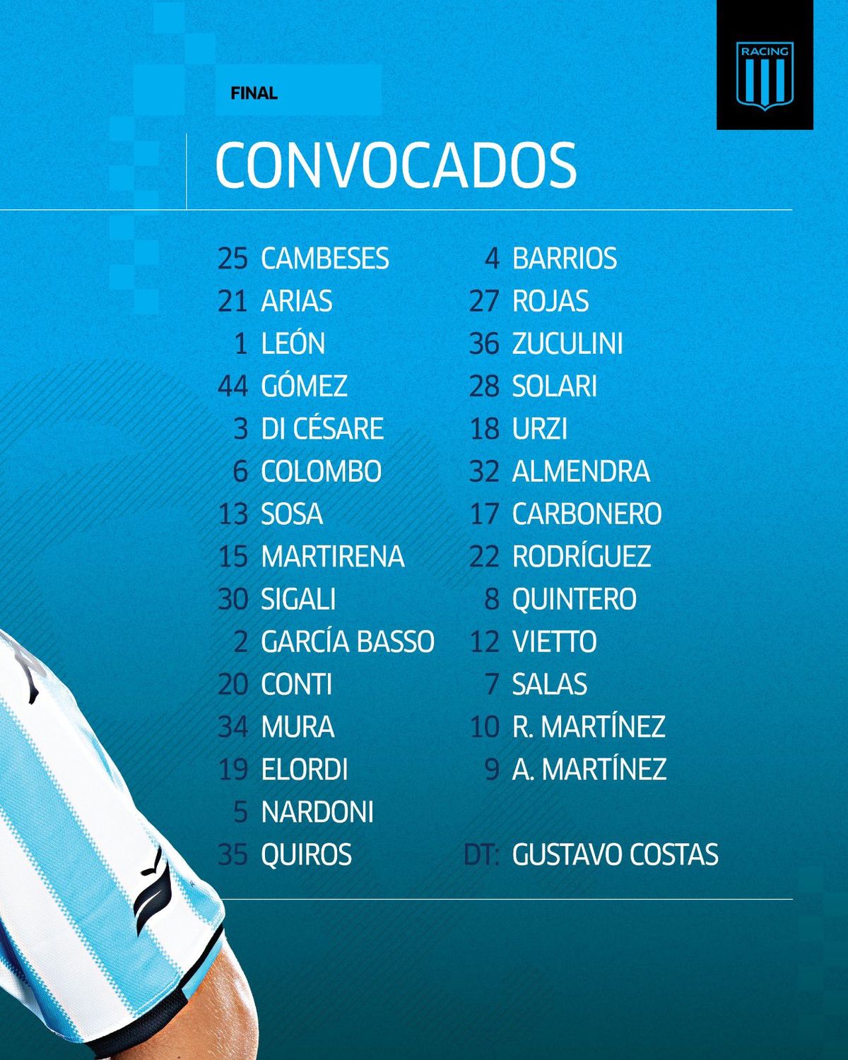 "No duermo. Vi como 10 partidos de Cruzeiro. Estamos re locos y a mi me encanta vivir así este momento de Racing porque como hincha nos tuvimos que comer de todo. Y hoy que mi gente y mi familia esté contenta. Es lo que soñé toda mi vida" (Gustavo Costas)