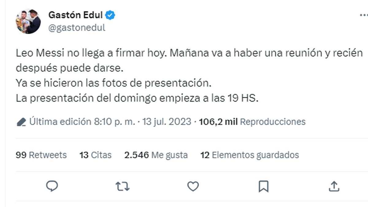 En tanto, las autoridades del club, encabezadas por el ex futbolista inglés David Beckham, especulan con el posible debut de Lionel Messi el 21 de julio, frente a Cruz Azul de México, en el marco de la Leagues Cup.