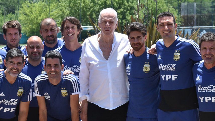 Menotti, en su primera aparición pública desde hace meses, encabezó la charla junto con el cuerpo técnico del seleccionado que comanda Scaloni y que tiene a los ex defensores Roberto Ayala y Walter Samuel como integrantes.