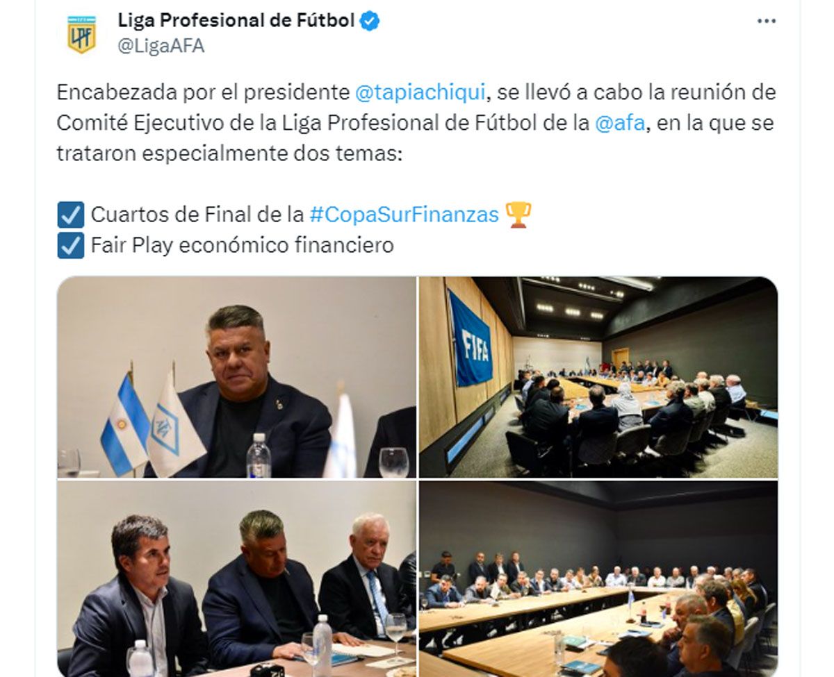 En medio de la polémica desatada por los arbitrajes en el fútbol argentino, Claudio "Chiqui" Tapia convocó a una reunión en AFA para determinar algunos lineamientos claves sobre el tema. Además se trató el tema de los cuartos de final de la Copa Liga Profesional 2024 y el Fair Play Financiero.