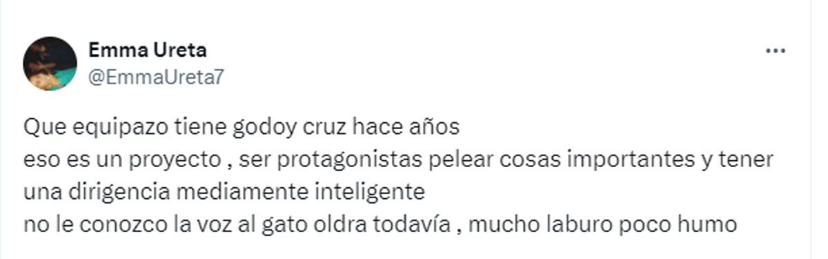 Los incidentes: "Me preocupa porque afuera hay familiares de los futbolistas y de todos nosotros. Somos todos hinchas de Godoy Cruz, estamos pasando un gran momento futbolístico y me preocupa que pasen estas cosas porque perjudican a nuestra institución. Espero que se pueda resolver porque es un momento en el que tenemos que estar todos juntos para tratar de lograr el objetivo que tanto queremos"