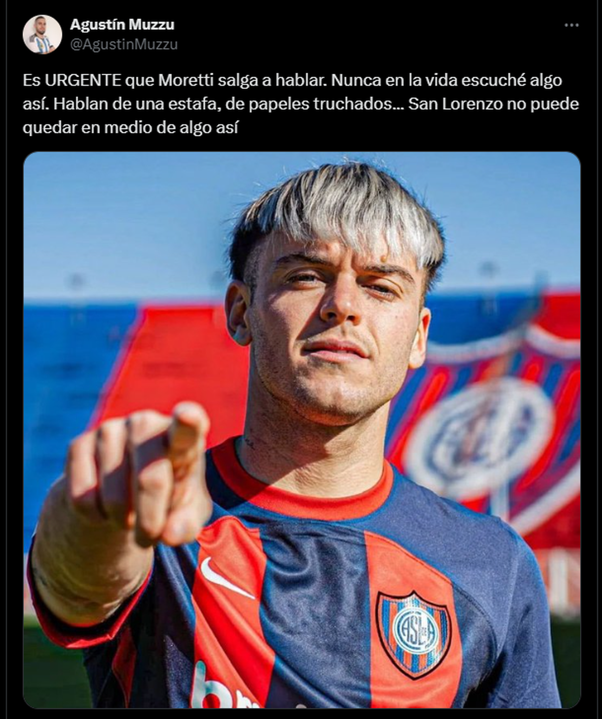 "Procedimos primero a rescindir el contrato a San Lorenzo, a notificarle al jugador que tenía que hacerse presente mañana (por este jueves) en Córdoba en la pretemporada de Independiente Rivadavia. Notificamos a AFA también y formulamos la denuncia porque fuimos estafados en nuestra buena fe", explicó.