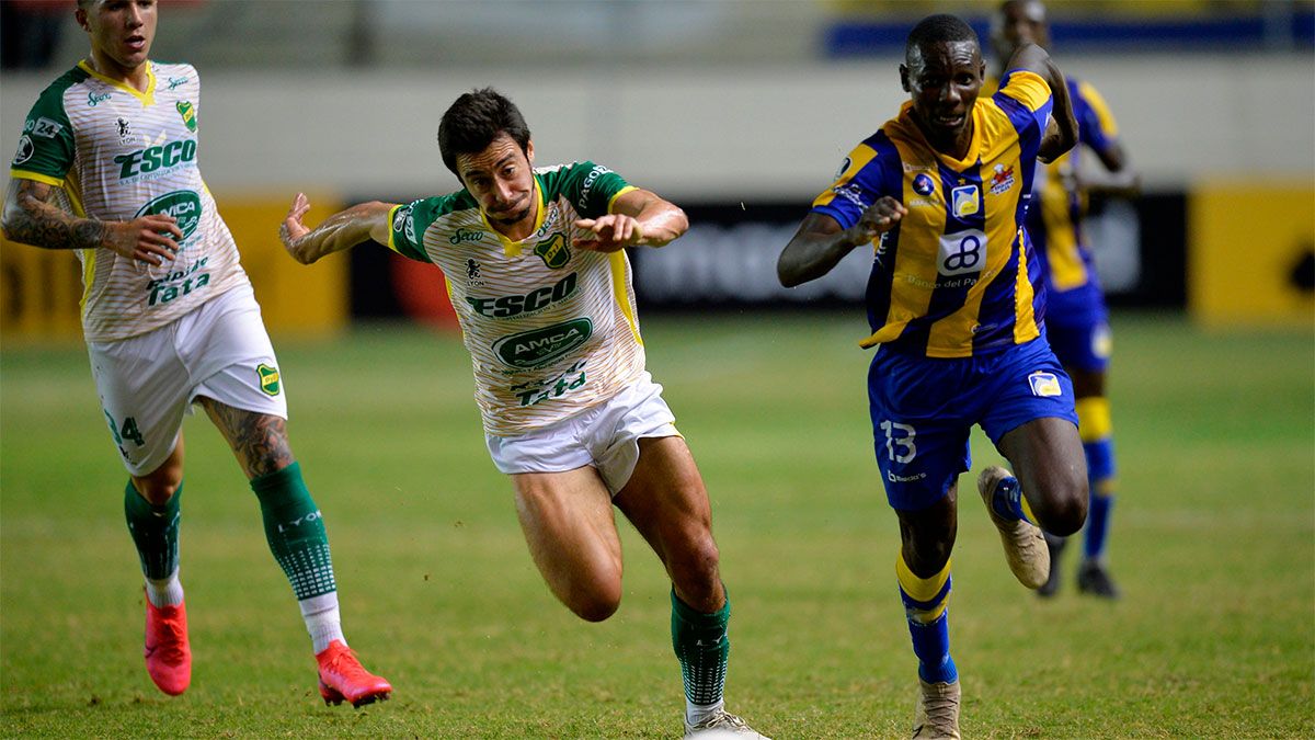 El "Halcón" tuvo muchos problemas para hacer pie en el defectuoso campo de juego del estadio "Jocay" y, a los 12 minutos del primer tiempo, quedó mal parado en un pelotazo del arquero Máximo Banguera y el delantero Janner Corozo venció con una volea la resistencia del arquero Ezequiel Unsain.