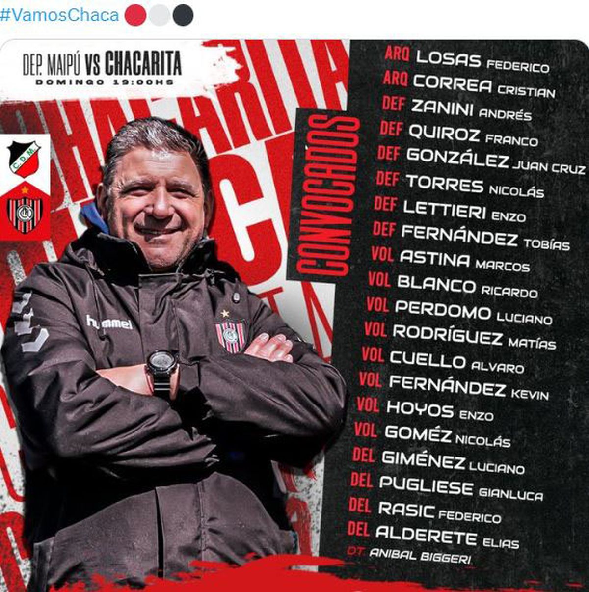 Deportivo Maipú se presentará este domingo ante Chacarita, en el estadio Omar Higinio Sperdutti, en un encuentro correspondiente a la 3ª fecha de la Zona B del torneo de Primera Nacional.