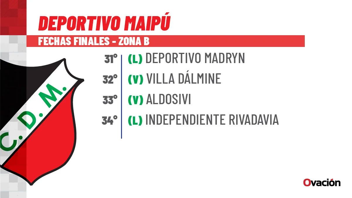 Deportivo Maipú se presentará este lunes desde las 15.30 ante Deportivo Madrynm en un encuentro correspondiente a la 31ª fecha de la Zona B del torneo la Primera Nacional.