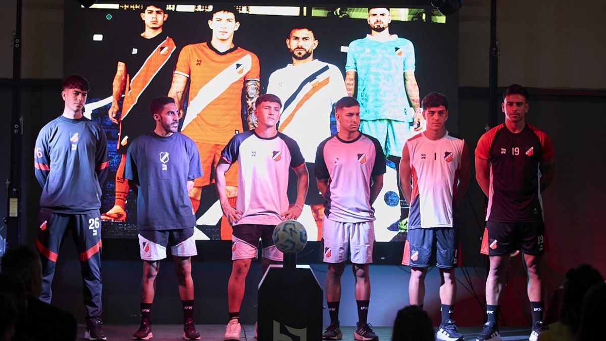 Iván Sandoval, Mirko Bonfigli y Ezequiel Pastrán, kinesiólogo, presentaron las remeras y short de entrenamiento; Lucas Vallejos mostró otra casaca alternativa y Diego Ramírez, reciente refuerzo, tambiénlo acompañó.
