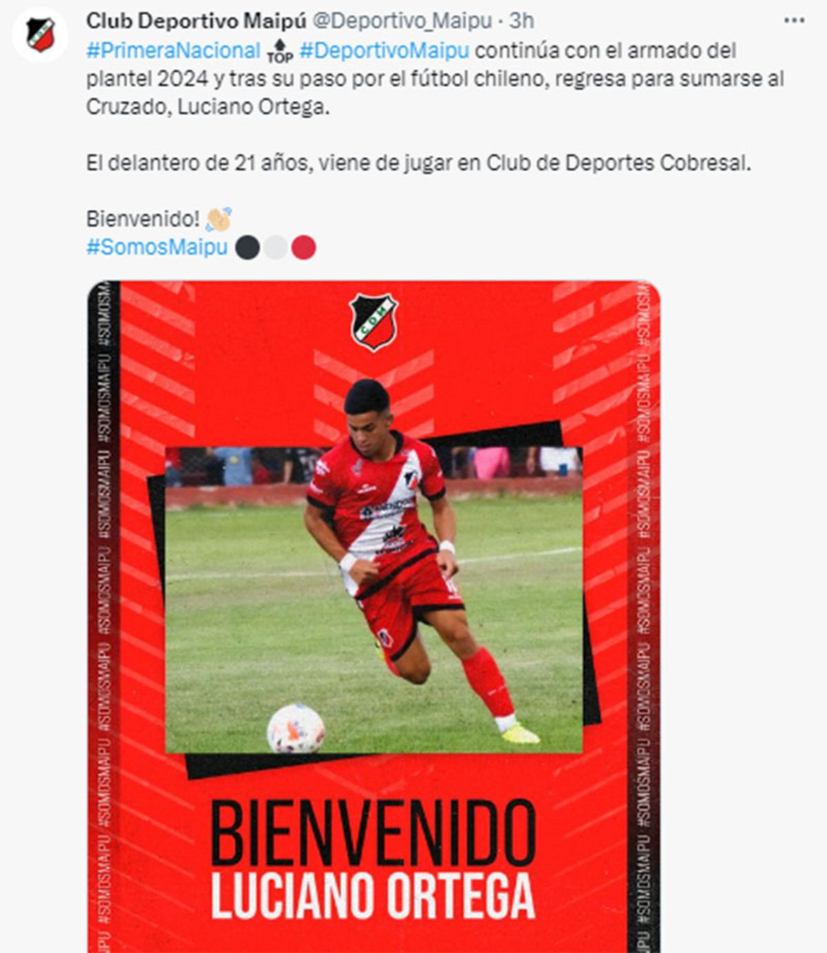 El Cruzado que preside Hernán Sperdutti confirmó este sábado que el delantero de 21 años Luciano Ortega retornará a la entidad tras su paso por el Cobresal de Chile.