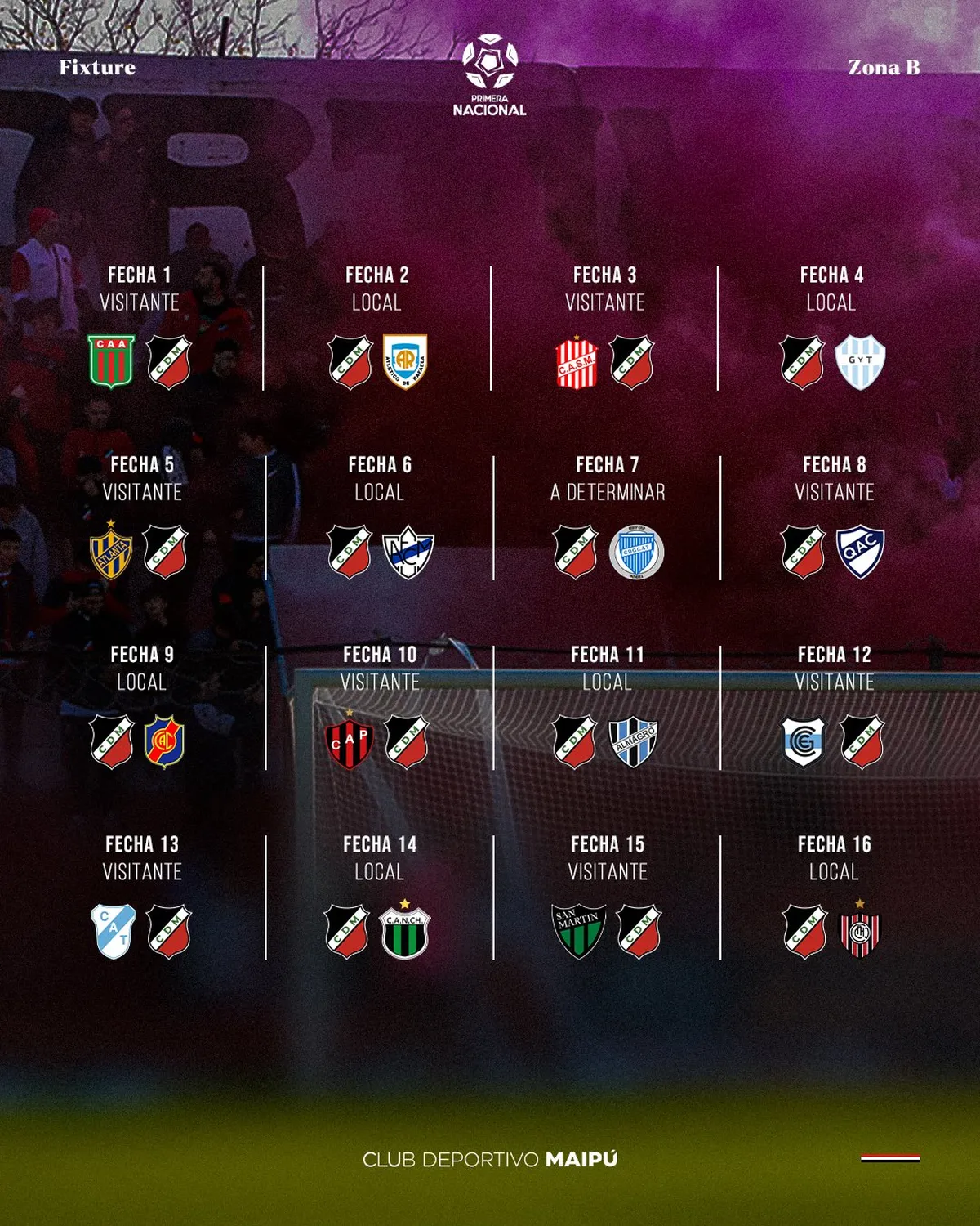 La AFA confirmó el programa de partidos para la temporada 2026 de la Primera Nacional y Deportivo Maipú debutará ante Agropecuario Argentino, en condición de visitante.