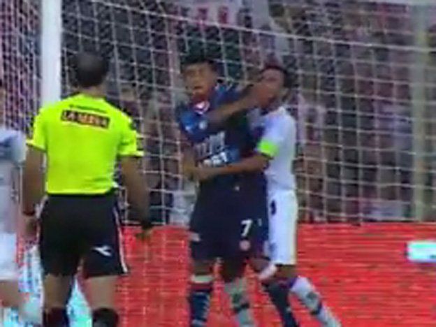 Unión de Santa Fe le ganaba a Vélez en su cancha, y todo parecía indicar que sería una tarde perfecta. Pero en la adrenalina del fútbol, pasan estas cosas.Triverio se quiso sacar de encima a un molesto Cubero, y lo hizo con un terrible e innecesario codazo que derivó en su expulsión, lo que por suerte no comprometió el resultado en favor del Tatengue.